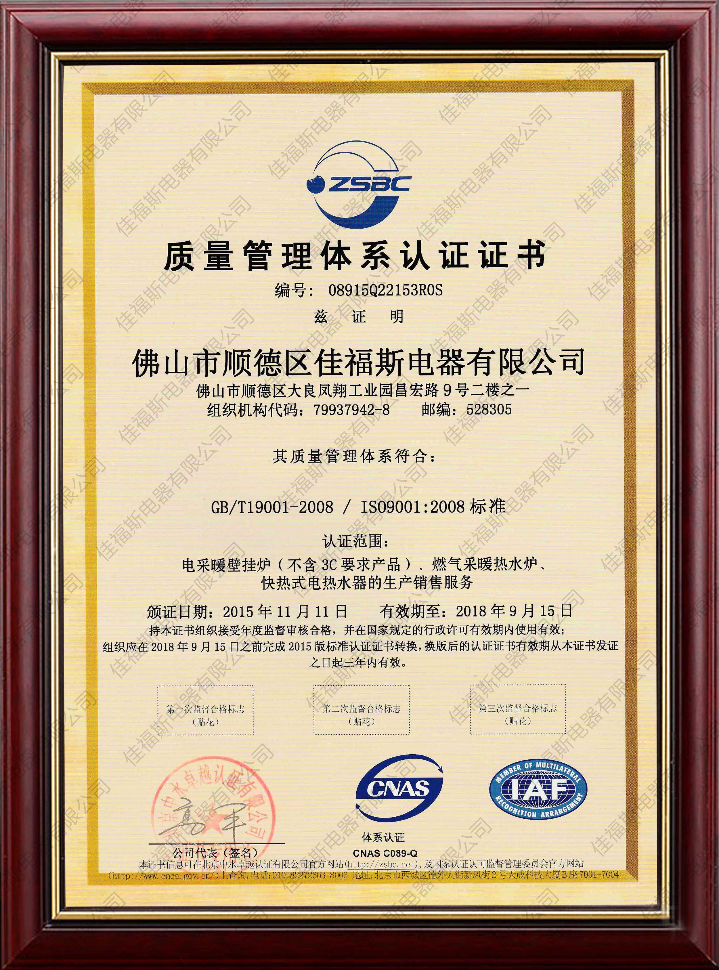 質量認證證書